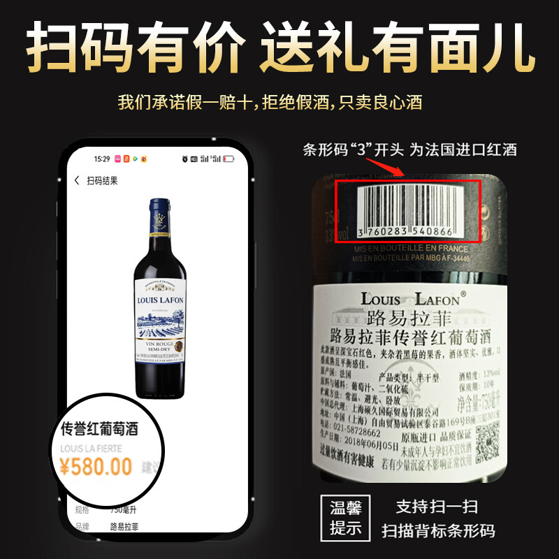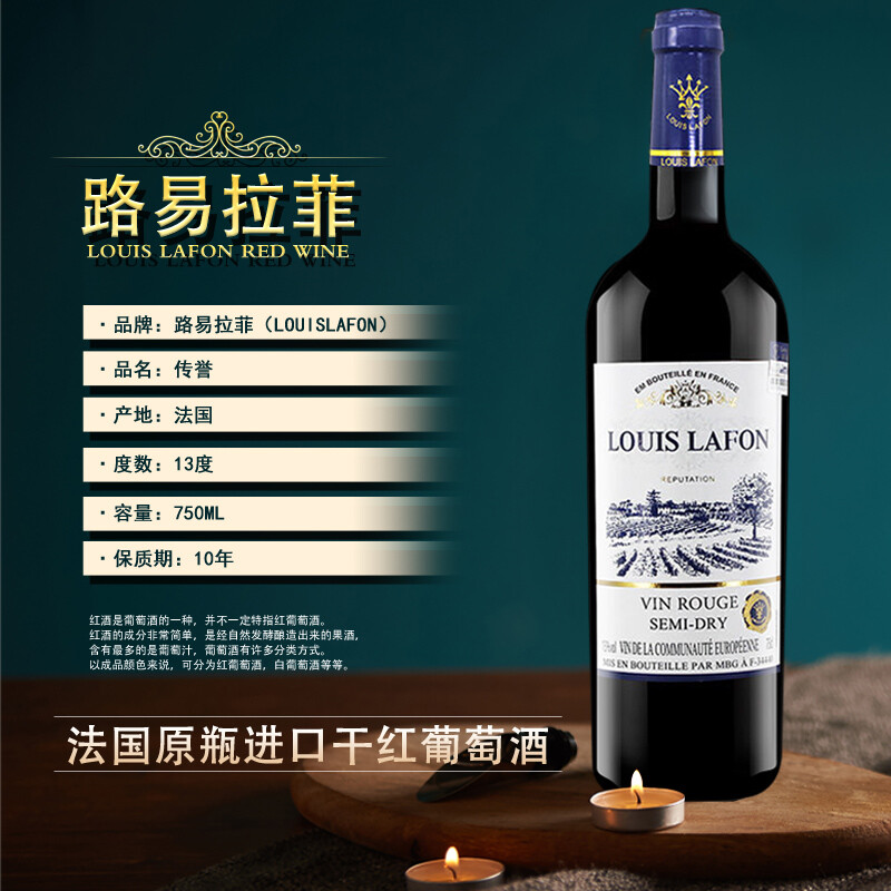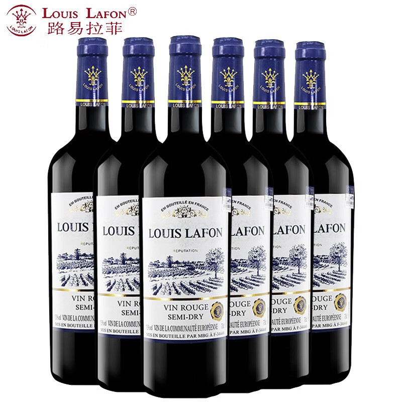 路易拉菲(LOUIS LAFON)法国原瓶 进口红酒 传誉 半干红葡萄酒 微甜不涩 送礼礼品 750ml*6支 整箱