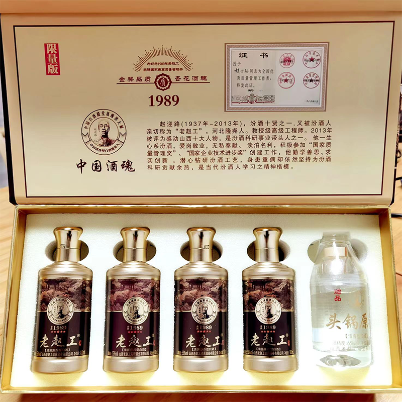 老赵工金质1989 纯粮酿造 口粮酒 (53%vol 清酱兼香型 100ml*4瓶+66%vol 清香型 100ml*1瓶)*6盒 整箱装
