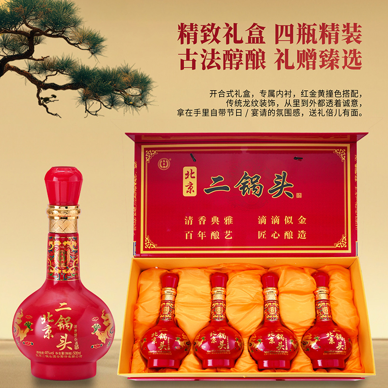 永丰牌 北京二锅头 京礼鸿韵 礼盒装 46度 清香型 固态法纯粮食酒 白酒 年货送礼 喜宴 500mL*4瓶 礼盒装