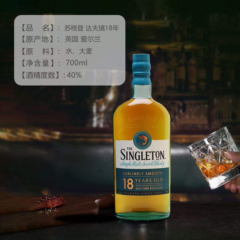 苏格登(Singleton)达夫镇18年 苏格兰 单一麦芽威士忌 700ml 原装进口洋酒