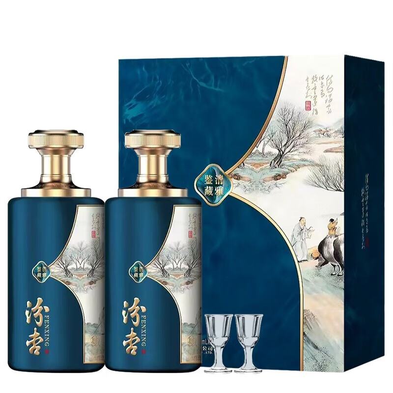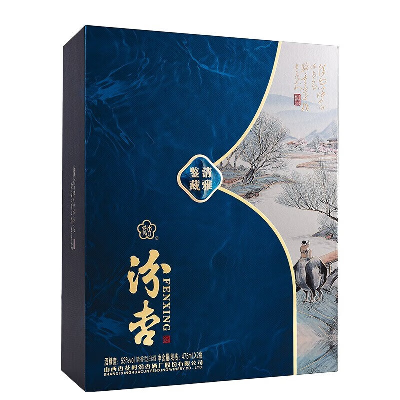山西杏花村 百年汾杏酒 清香型白酒礼盒53度 清雅鉴藏 商务送礼高端礼盒 粮食酒 475ml*2瓶*3盒 整箱装
