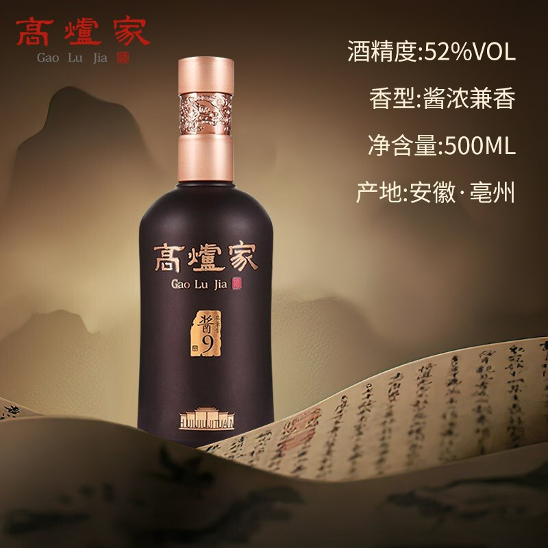 高炉家高炉家 52度 酱9 酱浓兼香型 白酒整箱单瓶装纯粮酒 喜酒宴请送礼 500ml*4瓶整箱装