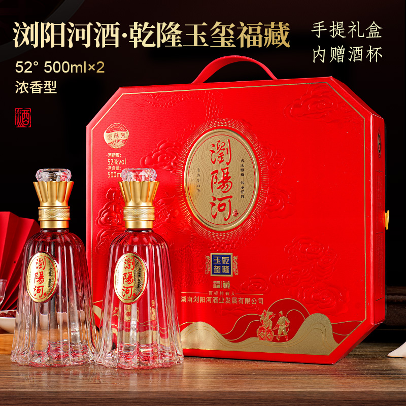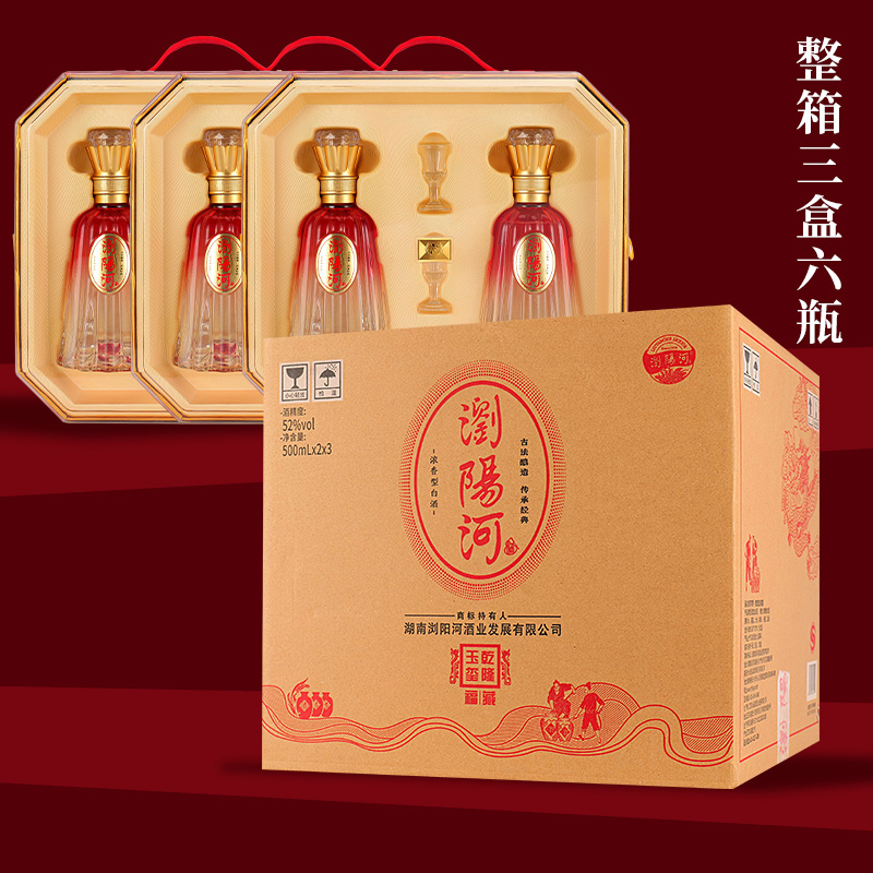 浏阳河 乾隆玉玺 福藏 52度 浓香型礼盒白酒 500ml*2瓶*3盒 整箱