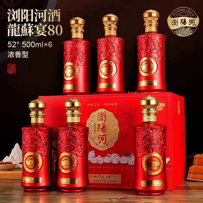浏阳河 龙苏宴80 52度 浓香型白酒 匠心匠造 纯粮浓香 500ml*6瓶 整箱