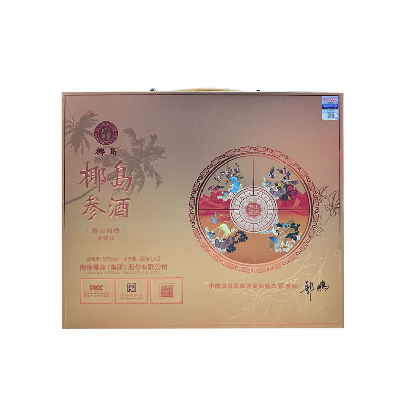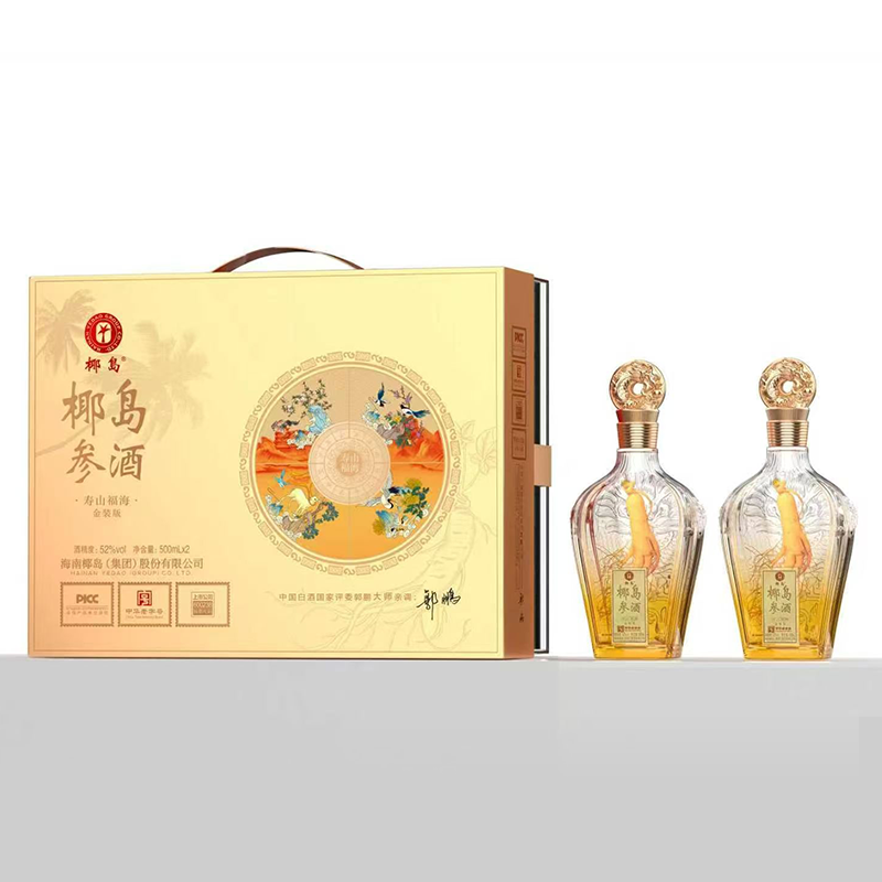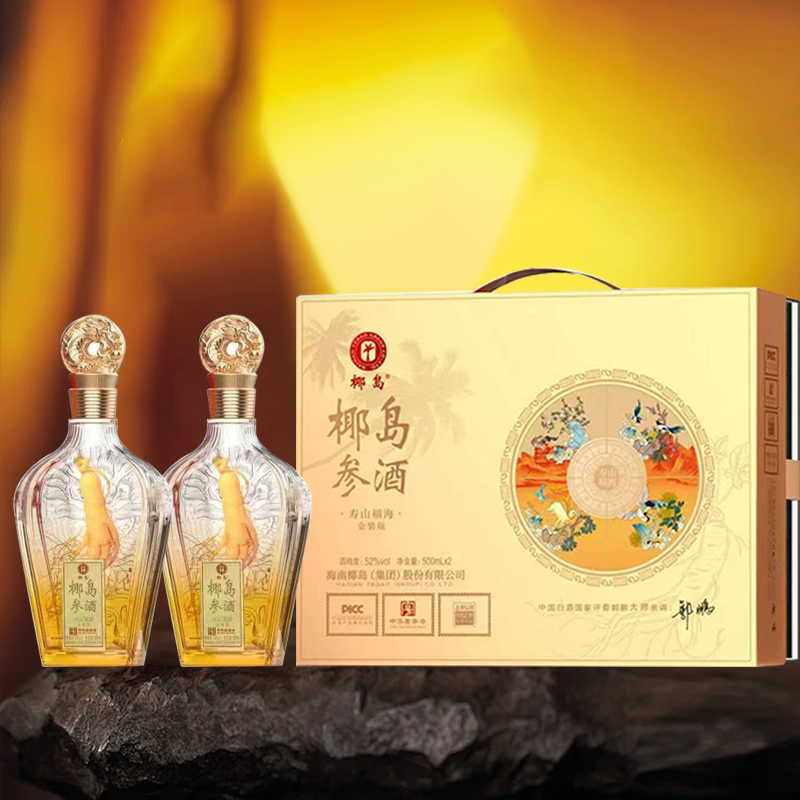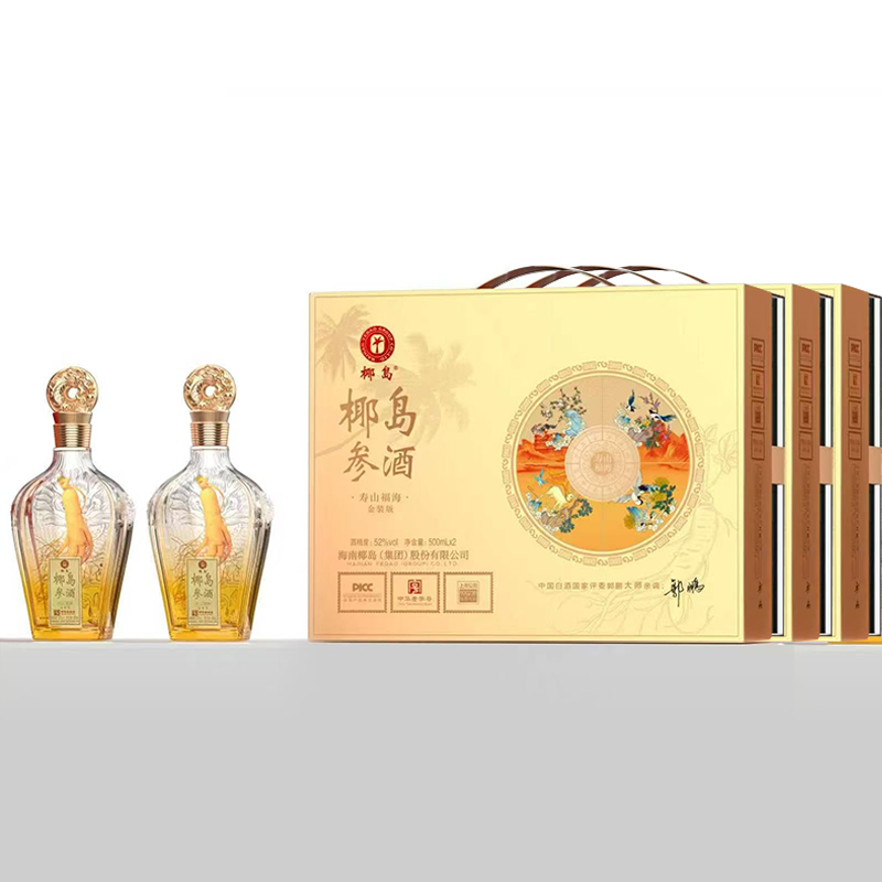 海南椰岛(集团)股份出品 椰岛参酒 寿山福海 金装版 52度 人参入酿 至味无双 琼浆玉液 馈君安康 500ml*2瓶*3盒 整箱装