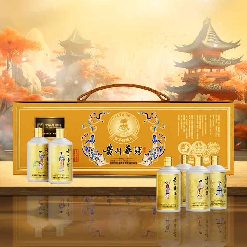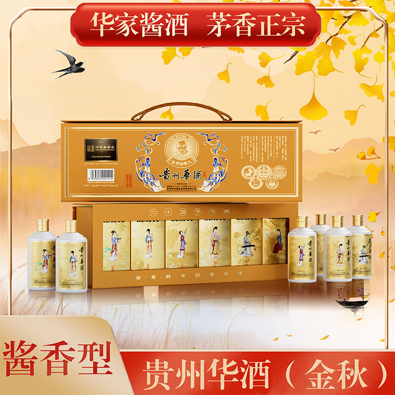 贵州华酒 金秋 53度 纯粮酱酒 送人送礼 口粮酒 100ml*6瓶 整箱装