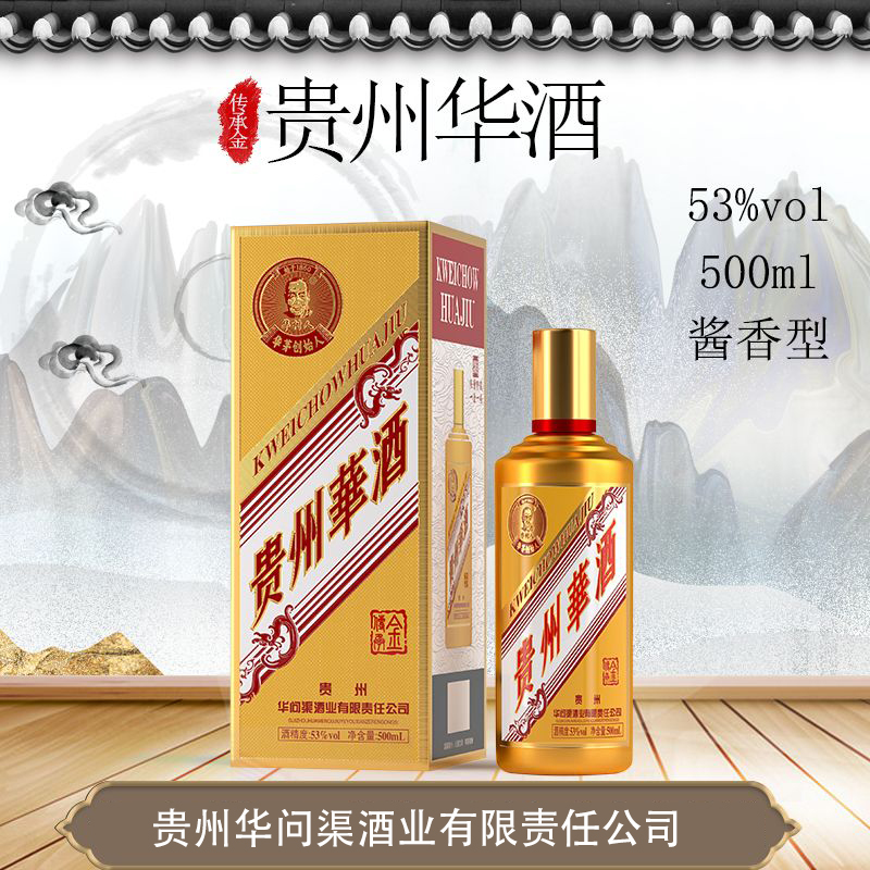 贵州华酒酒 传承金 53度 酱香型白酒 粮食酒 自饮送礼 500mL*6瓶 整箱装