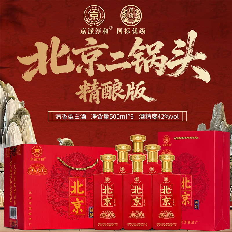 京派淳和北京二锅头精酿版 红 42度 清香型白酒 优级纯粮食酒 500mL*6瓶 整箱装