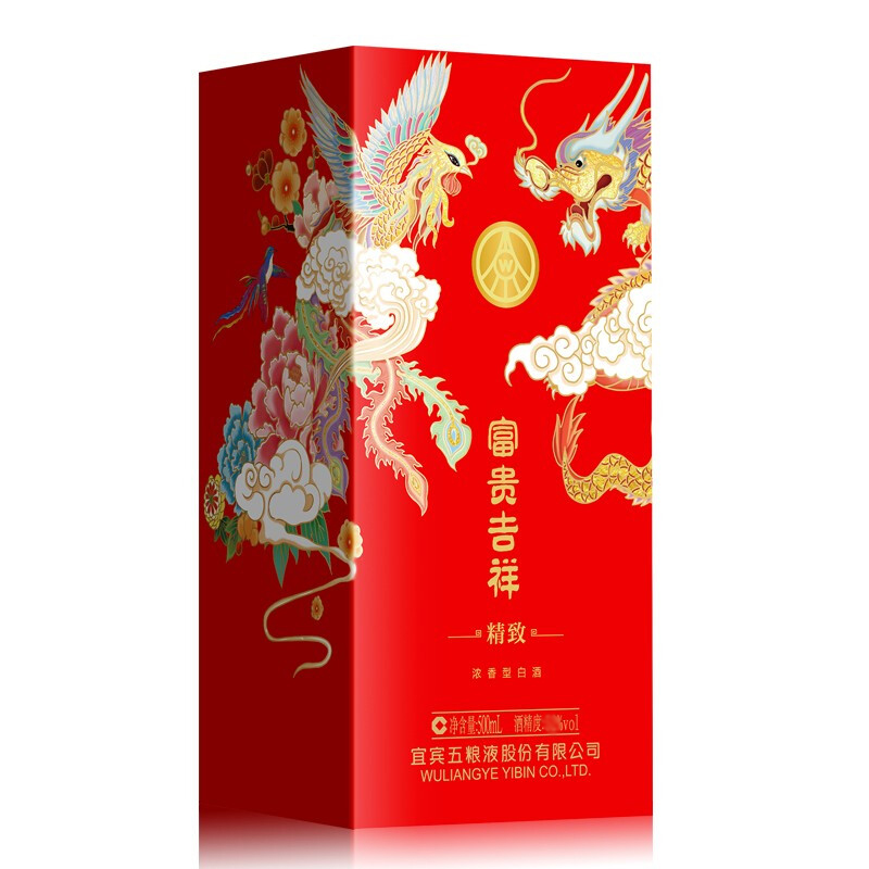 五粮液股份 富贵吉祥精致 婚宴喜酒 浓香型白酒 整箱装 38度 500ml*6瓶 高度纯粮食酒水